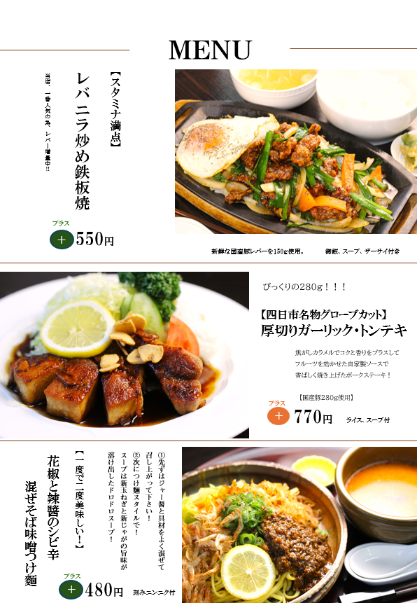 仕入の都合でメニューが変更になる場合もございます